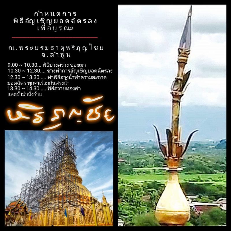 | • กำหนดการ พิธีอัญเชิญยอดฉัตร *** พระบรมธาตุเจ้าหริภุญไชยลงเพื่อบูรณะ |