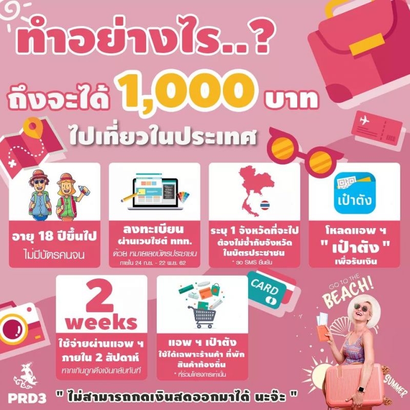 | • วิธีสมัคร/เงื่อนไข รับเงินท่องเที่ยว1,000บาท เริ่ม 24กันยา62!! |