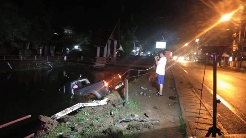 | • ปิคอัพเสียหลักชนเสาไฟก่อนตกลงไปในคูน้ำ หน้าวัดจามเทวี(ลำพูน) |
