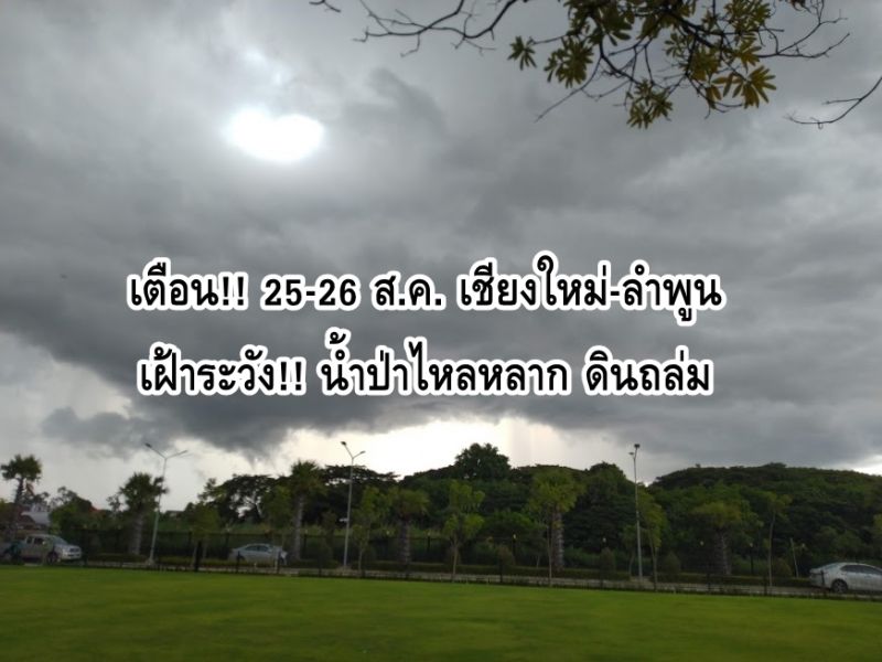 | • เตือน!! 25-26 ส.ค. เชียงใหม่-ลำพูน เฝ้าระวัง! น้ำป่าไหลหลาก ดินถล่ม |