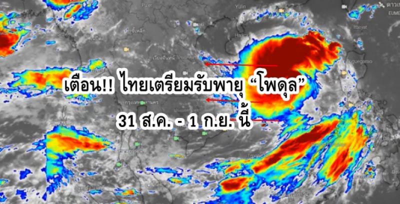 แจ้งเตือนประชาชนทั่วทุกภาคของประเทศ ให้ระมัดระวังอันตรายจากพายุ “โพดุล”ที่คาดว่าจะเคลื่อนเข้าไทยในช่วงวันที่ 31 ส.ค. - 1 ก.ย. นี้
