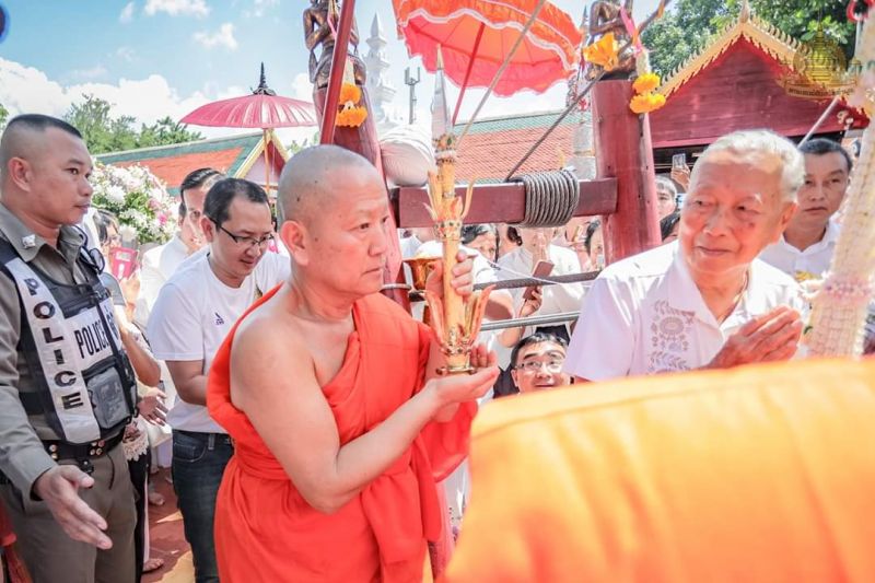 ๑๕ กันยายน ๒๕๖๒ เวลา ๑๒.๓๐ น.พระเดชพระคุณ พระพรหมมงคล วิ. เป็นประธานฝ่ายสงฆ์ พร้อมด้วย พระเดชพระคุณ พระเทพรัตนนายก เจ้าคณะจังหวัดลำพูน,เจ้าอาวาสวัดพระธาตุหริภุญชัย วรมหาวิหาร และมีนายอรรษิษฐ์ สัมพันธรัตน์ ผู้ว่าราชการจังหวัดลำพูน เป็นประธานฝ่ายฆราวาส พร้อมด้วยหน่วยงานราชการ ประชาชน พุทธศาสนิกชน ในพิธียกยอดฉัตรทองคำ บัวคำยอดฉัตร ระฆังทองคำ ยอดพระบรมธาตุหริภุญชัย