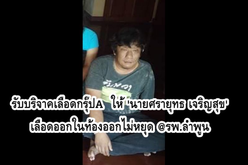 ท่านใดที่มีเลือดกรุ๊ปA ขอเมตตาจากท่านได้ช่วยบริจาคให้นายศรายุทธ เจริญสุข ที่โรงพยาบาลลำพูนด้วยครับ