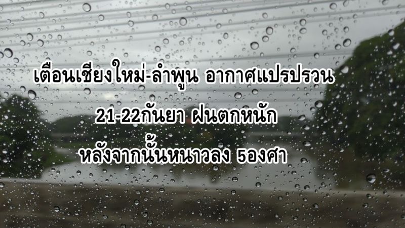 | • เตือนเชียงใหม่-ลำพูน อากาศแปรปรวน 21-22กันยา ฝนตกหนัก หลังจากนั้นหนาวลง 5องศา |