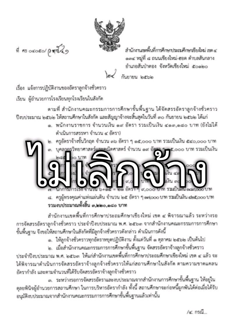 | • ยิ้มได้! กระทรวงศึกษาฯ หางบให้ลูกจ้างชั่วคราว สพป.เชียงใหม่ เขต4 |
