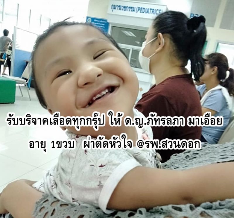 รับบริจาคเลือดทุกกรุ๊ป ให้ ด.ญ.ภัทรลภา มาเอือย อายุ 1ขวบ ผ่าตัดหัวใจ @รพ.สวนดอก