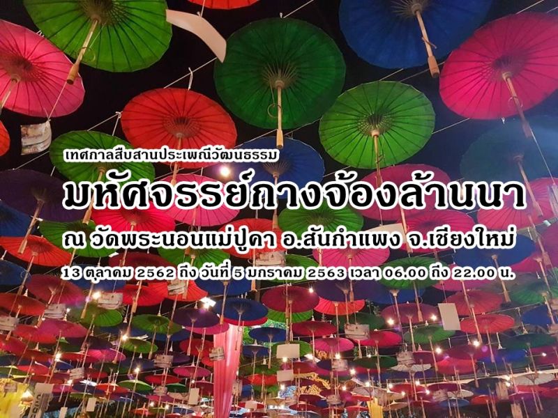 | • มหัศจรรย์กางจ้องล้านนา 13ตุลา62-5มกรา63 ณ วัดพระนอนแม่ปูคา อ.สันกำแพง จ.เชียงใหม่ |