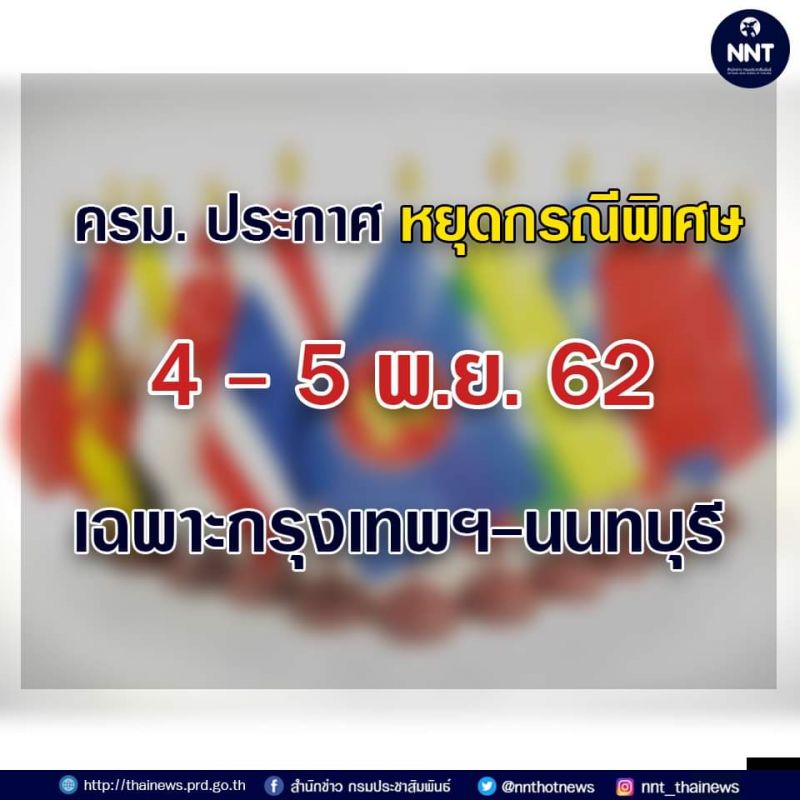 📣📣 ครม. ประกาศหยุดกรณีพิเศษ 4-5 พฤศจิกายน 2562