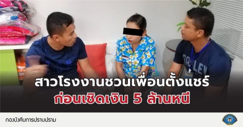 | • จับสาวโรงงาน เปิดแชร์ออนไลน์ ให้ดอกสูง สุดท้ายเชิดเงิน 5ล้านบาท |