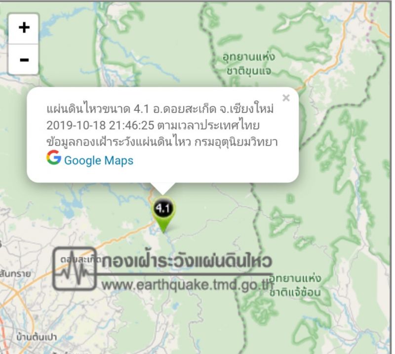 แผ่นดินไหว 4.1 ริกเตอร์ จุดศูนย์กลางดอยสะเก็ด