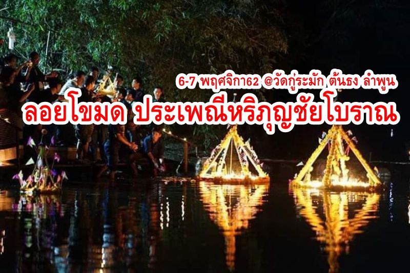 เชิญแอ่ว ลอยโขมด ประเพณีหริภุญชัยโบราณมากกว่า 1,000ปี ,6-7 พฤศจิกา62 @วัดกู่ระมัก ต้นธง ลำพูน