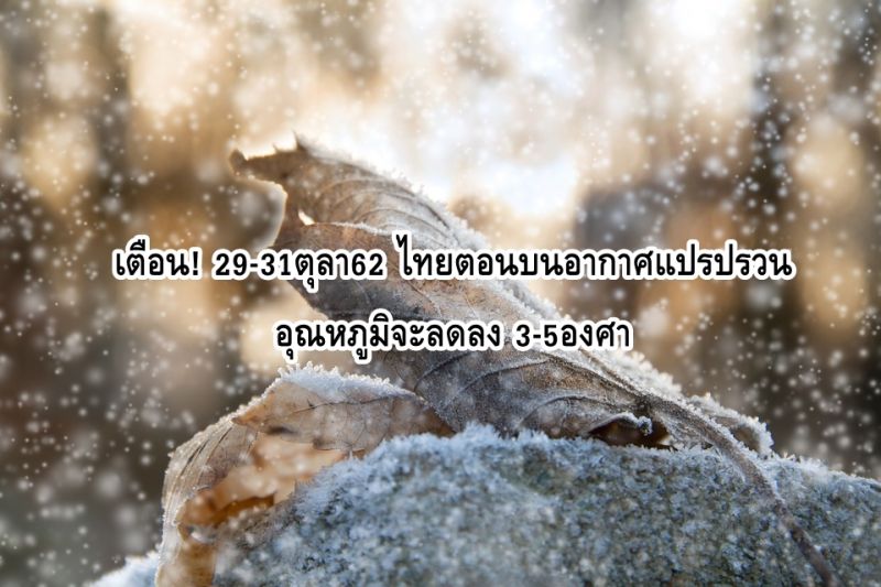 | • อุตุฯ เตือน! 29-31ตุลา62 ไทยตอนบนอากาศแปรปรวน อุณหภูมิจะลดลง 3-5องศา |