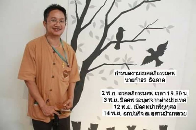 วันนี้ แอดมินได้รับข่าวเศร้า เนื่องด้วย "อาจารย์กำธร ธิฉลาด"   หรือ  อ้ายโบ้ ปราชญ์ผู้รู้ประวัติศาสตร์ลำพูน  ผู้เป็นครู เป็นต้นแบบในการทำงานพัฒนาชุมชน  เป็นผญ๋า ภูมิปัญญา​ที่สำคัญของคนหละปูน    ได้เสียชีวิตลงแล้ว  โดย ค่ำวันนี้ 2 พ.ย.62 จะมี พิธีสวดอภิธรรม  และจะมีการเกิดบำเพ็ญกุศลศพอีกครั้ง ในวันที่ 12พ.ย.62  และ ฌาปนกิจ ในวันที่ 14 พ.ย.62  ณ สุสานบ้านหลวย   จึขอแจ้งมายังญาติสนิทมิตรสหายมา ณ ที่นี้ด้วยครับ