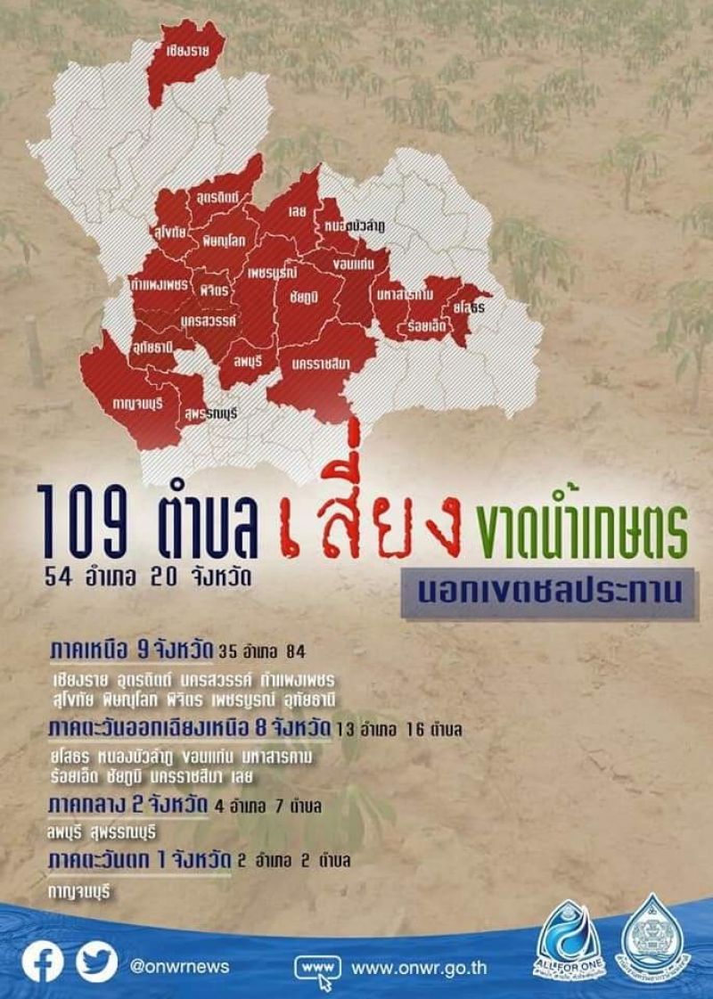 #ไทยคู่ฟ้า ภัยแล้งนี้ พื้นที่นอกเขตชลประทาน 20 จังหวัด โปรดเตรียมพร้อมรับมือเร่งด่วน โดยเฉพาะพี่น้องชาวเกษตรกรในพื้นที่เสี่ยงขาดแคลนแหล่งน้ำต้องวางแผนการเพาะปลูกไว้ให้ดี ซึ่งภาครัฐมีมาตรการเตรียมพร้อมรับมือต่อสถารการณ์วิกฤตภัยแล้งอย่างทั่วถืงจากหน่วยงานที่เกี่ยวข้อง เช่น การขุดบ่อบาดาล การขุดลอกลำน้ำตื้นเขิน การดึงน้ำจากแหล่งน้ำใกล้เคียง เป็นต้น