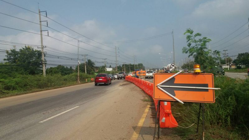 ติดป้ายเสริมเตือนความปลอดภัยทางก่อสร้างก่อถึงทางเบียงชินเชิง