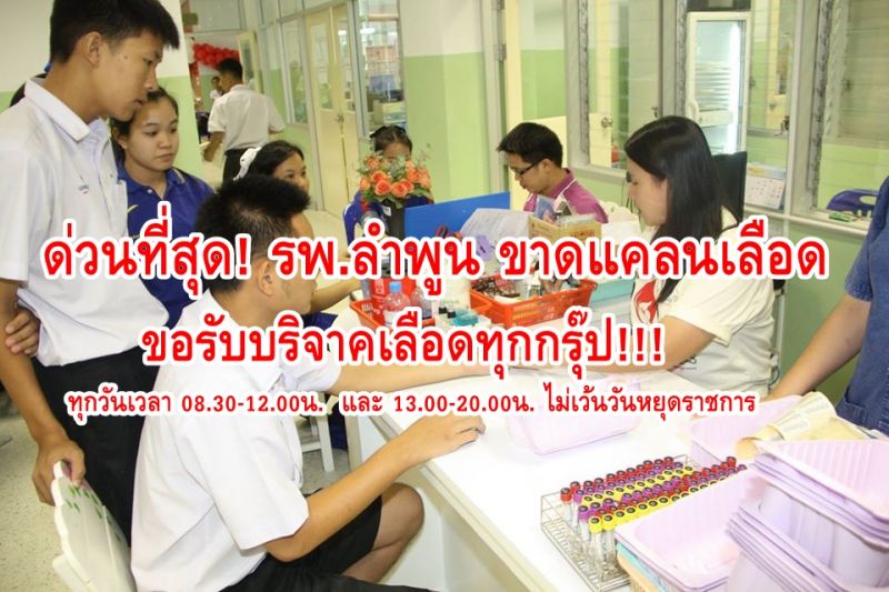 ด่วนที่สุด!! รพ.ลำพูน ขาดแคลนเลือดทุกกรุ๊ป ขอรับบริจาคเลือดด่วน!!!