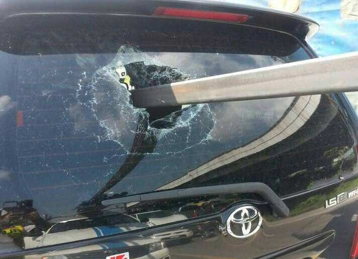 อุทาหรณ์ เหล็กพุ่งทะลุเสียบทะลุกระจกด้านหลัง มาถึงหน้าคอนโซลด้านหน้า