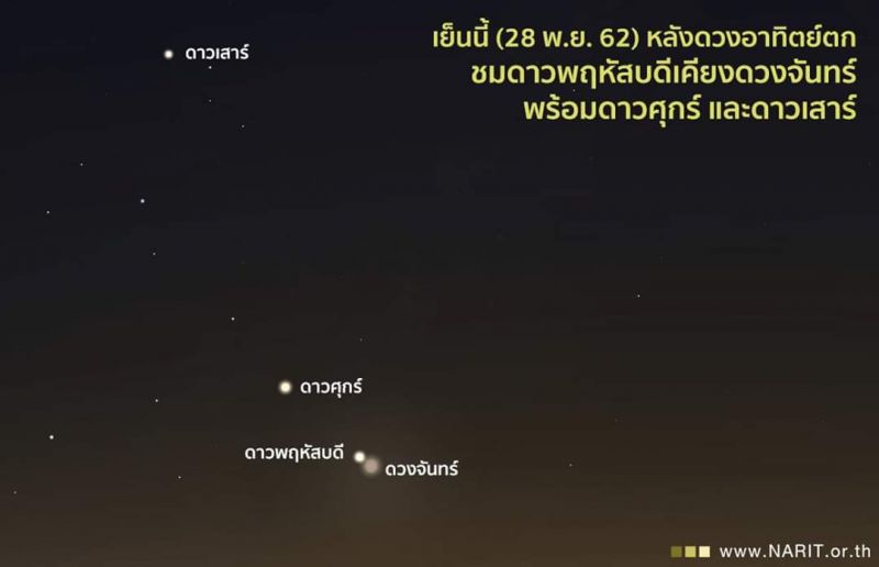 เริ่มวันนี้ (28 พฤศจิกายน 2562) แล้วครับ กับปรากฏการณ์ #ดาวเคียงเดือน