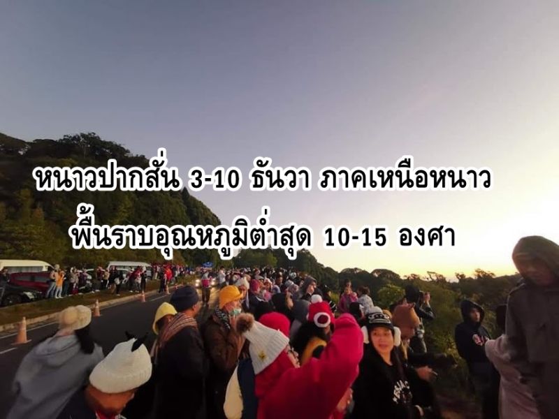 | • หนาวปากสั่น 3-10 ธันวา เหนือหนาว พื้นราบอุณหภูมิต่ำสุด 10-15 องศา |