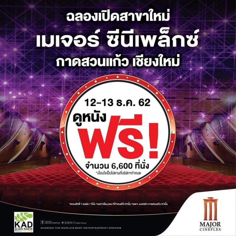 เงื่อนไขการรับสิทธิ์ดูหนังฟรี ที่เมเจอร์ ซีนีเพล็กซ์ กาดสวนแก้ว เชียงใหม่ :