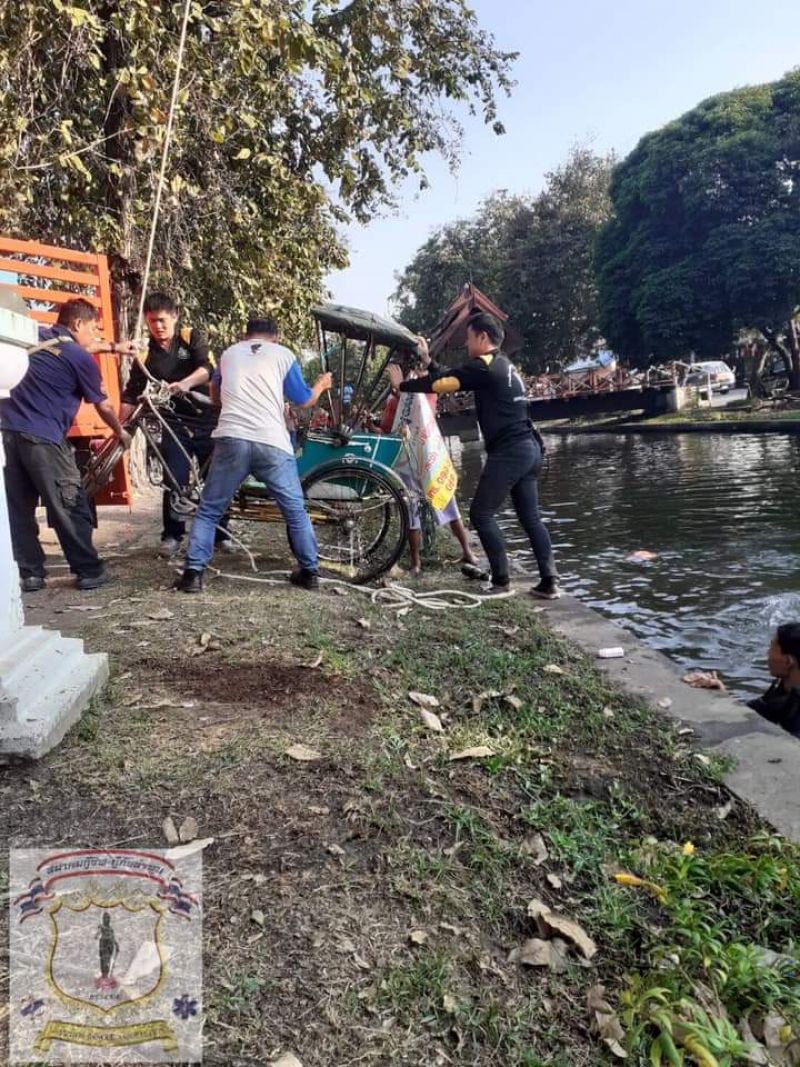 สามล้อถีบ ไหลตกคูเมือง กู้ภัยลำพูน ช่วยเก็บกู้