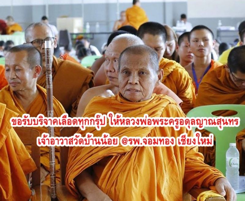| • ขอรับบริจาคเลือดทุกกรุ๊ป ให้หลวงพ่อพระครูอดุลญาณสุนทร เจ้าอาวาสวัดบ้านน้อย @รพ.จอมทอง เชียงใหม่ |