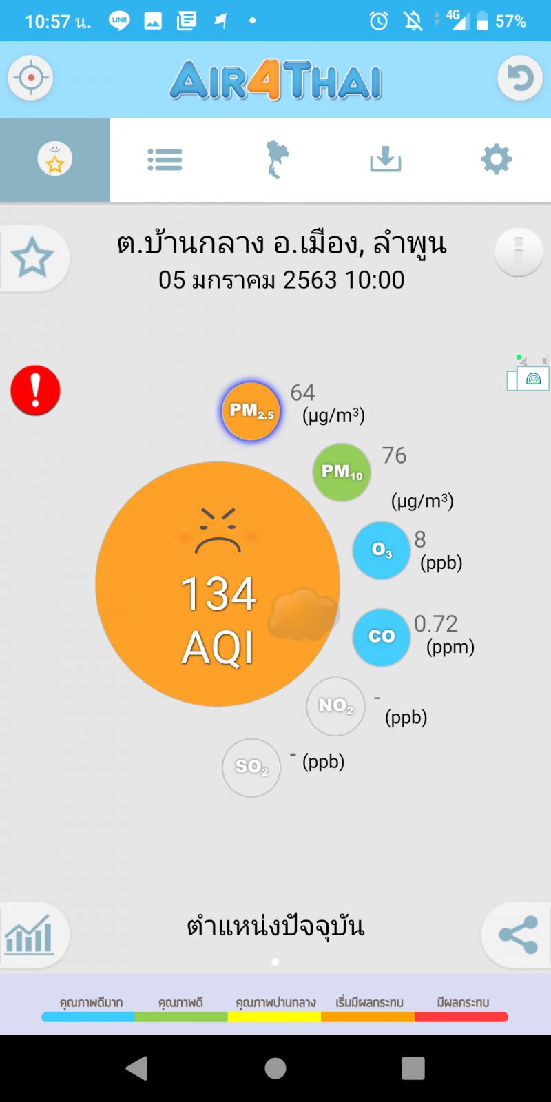 สภาพอากาศของจังหวัดลำพูน อยู่ในระดับสีส้ม มานานนับ 3 สัปดาห์ ในช่วงก่อนปีใหม่ และอากาศดีในช่วงปีใหม่เนื่องจากเกิดพายุลูกเห็บ แต่วันนี้ ค่า PM 10 PM 2.5 และดัชนีคุณภาพอากาศ ได้พุ่งขึ้น เกณฑ์มาตรฐานไปสู่ระดับสีส้มอย่างรวดเร็ว ทำให้วันนี้ อากาศแย่ที่สุดในภาคเหนือ