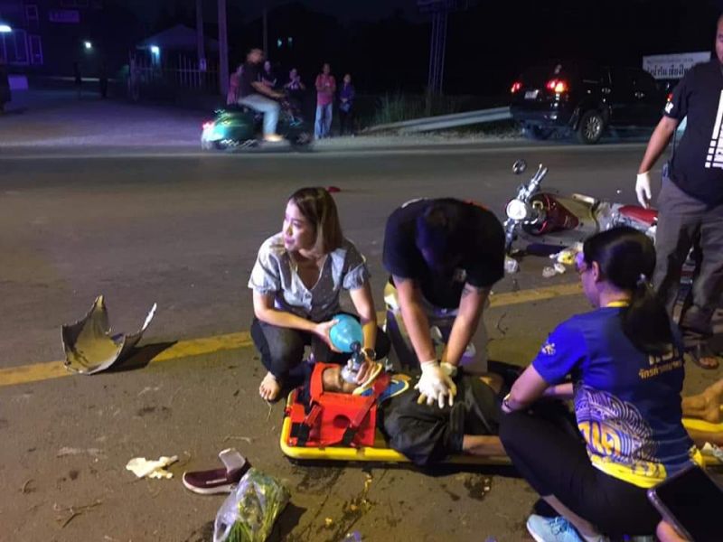 วันนี้ 5 มกราคม 2563 เวลาประมาณ 18.15 น. เกิดอุบัติเหตุ จยย.ล้ม ก่อนถึงวัดท่าใหม่อิ อำเภอเมืองจังหวัดเชียงใหม่ ผู้บาดเจ็บ2ราย อายุประมาณ50ปี ชาย1หญิง1 โชคดีมีพยาบาลผ่านมา ทำการ CPR คุณลุงอาการสาหัส เบื้องต้น ลุงตุ๋ยและป้าดา