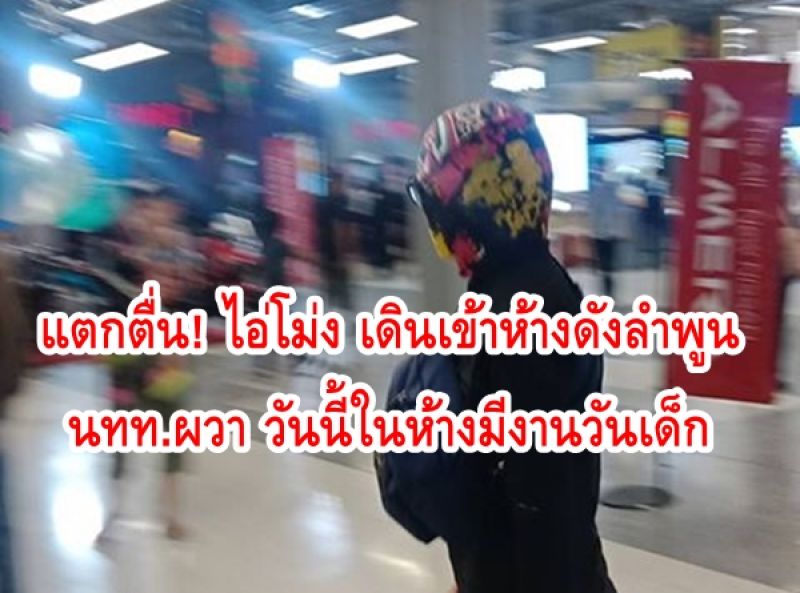 แอดมินได้รับ แจ้งจาก สมาชิกว่า วันนี้ 11 ม.ค.63  ที่ห้างดังของเมืองลำพูน  ได้เกิดเหตุแตกตื่น เพราะมี ไอ่โม่ง ใส่หมวกกันน๊อค เสื้อแขนยาว สะพายกระเป๋า  คล้ายการแต่งตัว ของคนร้ายในเหตุการณ์สลด ปล้นร้านทอง ที่ ลพบุรี ทำให้มีผู้เสียชีวิต 3ศพ หนึ่งในนั้น เป็นเด็ก อายุ 3ขวบ สร้างความเสียใจให้คนทั้งประเทศ