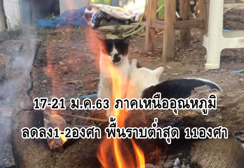 | • 17-21 ม.ค.63 อุณหภูมิลดลง 1-2 องศา พื้นราบต่ำสุด 11องศา |