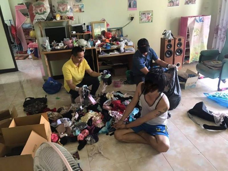 และจากการตรวจค้นพบ ชุดชั้นในผู้หญิง จำนวนกว่า 1000 ชิ้นในบ้านผู้ต้องหา