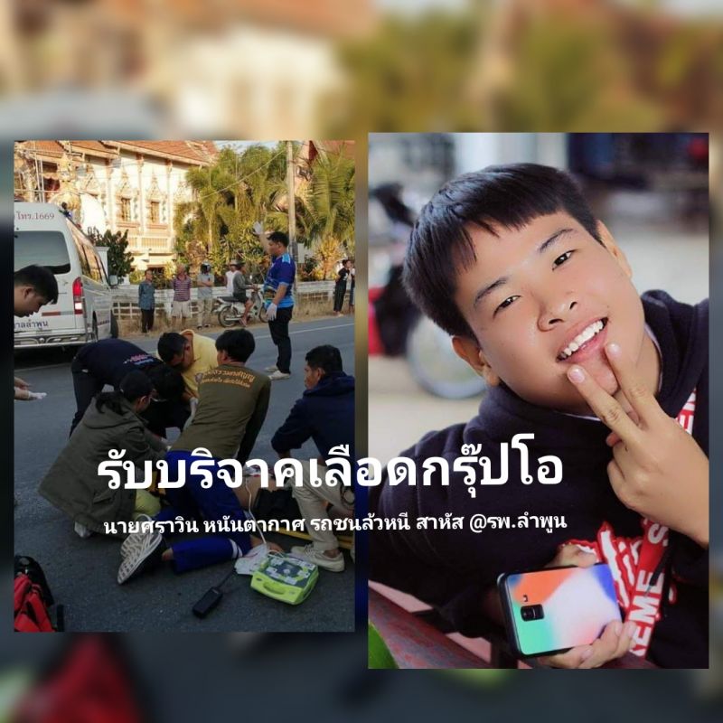 | • รับบริจาคเลือดกรุ๊ป O ให้ นายศราวิน หนันตากาศ รถชนล้วหนี สาหัส @รพ.ลำพูน |