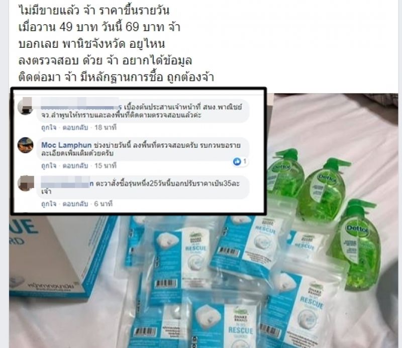 ซึ่งหลังจากโพสต์ของเฟสบุ๊คส่วนตัวแล้ว ได้มี เจ้าหน้าที่จาก พานิชย์จังหวัดลำพูน ได้มาขอข้อมูลเพิ่ม และ จะลงตรวจสอบในบ่ายวันนี้