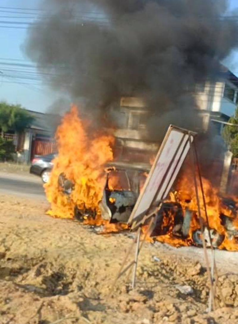 ระทึก เพลิงไหม้รถยนต์ ใกล้ รร.ช่องฟ้าซินเซิงฯ