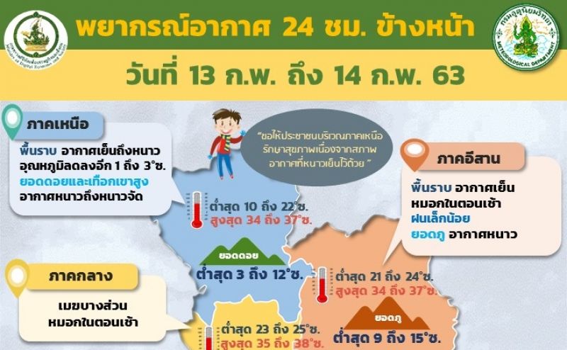 พยากรณ์อากาศประจำวันที่ 13 กุมภาพันธ์ 2563