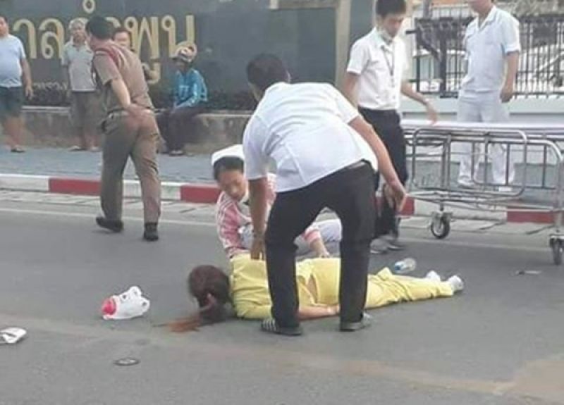 ในที่เกิดเหตุ พบ ผู้บาดเจ็บ ใส่ชุดสีเหลือง เป็น เจ้าหน้าที่ผู้ช่วยพยาบาล ของ โรงพยาบาล นอนเจ็บอยู่กลางถนน เนื่องจาก โดน รถยนต์ ชน ขณะกำลังข้ามทางม้าลาย บริเวณหน้า โรงพยาบาล ซึ่ง ผู้บาดเจ็บ ขณะนี้ กำลังรอผลการ แสกนสมอง เพราะ ได้รับการกระทบกระเทือน