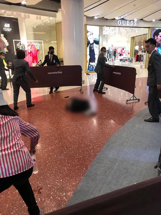 ในที่เกิดเหตุ บริเวณชั้น 1 ของห้าง พบร่าง ด.ช.เอ (นามสมมุติ) อายุ 12 ปี นักเรียนโรงเรียนแห่งหนึ่งใน จ.เชียงใหม่ สภาพสวมเสื้อยืดสีเทาเข้ม ใส่กางเกงขายาวสีดำ สวมถุงเท้าสีขาว ไม่ใส่รองเท้า นอนคว่ำอยู่บนพื้น ทางห้างได้กันคนและช่วยเหลือในเบื้องต้น ส่งต่อให้กู้ชีพและนำตัวส่งโรงพยาบาลตำรวจ โดยจุดที่ตกลงมา ใกล้กับงานแถลงกิจกรรมวิ่งงานหนึ่ง