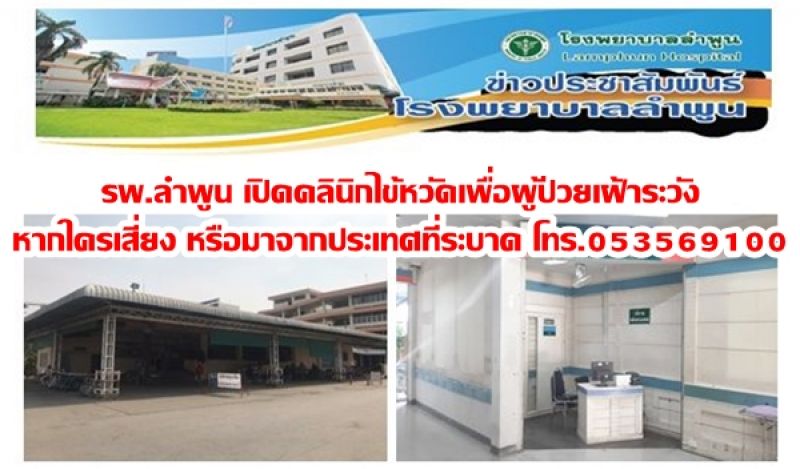 โรงพยาบาลลำพูน ได้จัดตั้ง คลินิคไข้หวัด เป็นการบริการแบบเบ็ดเสร็จจุดเดียวไม่ให้ผู้ป่วย ที่เข้าข่ายเฝ้าระวังไปปะปนกับผู้ป่วยทั่วไป ทั้งนี้ เพื่อดการแพร่ กระจายเชื้อ และ ช่วยในการคัดกรองผู้ป่วยได้อย่างถูกต้อง รวดเร็ว ตรงกับโรค โดยจะเริ่มเปิดให้บิรการให้วันจันทร์ ที่ 24 ก.พ.63 เวลา 8.30-16.00น. ณ ตึกอุบัติเหตุเดิม