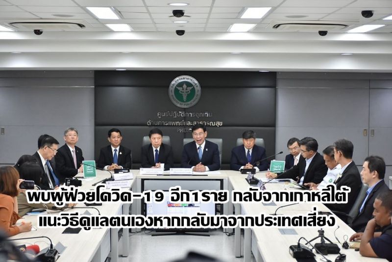 กระทรวงสาธารณสุข เผยผู้ป่วยโรคติดเชื้อไวรัสโคโรนา 2019 หายเป็นปกติ กลับบ้านได้อีก 1 ราย พบผู้ป่วยรายใหม่ 1 รายกลับจากเกาหลีใต้