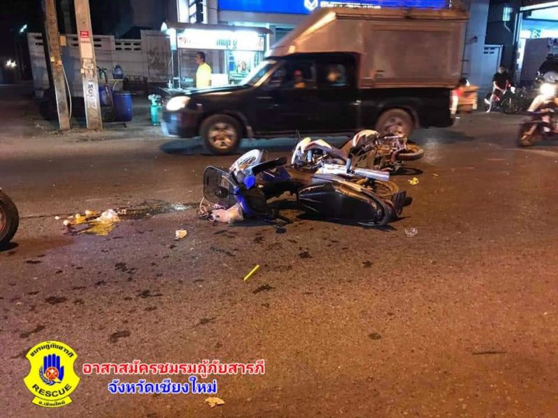 28 ก.พ.62 เมื่อเวลา 20:00 น. รับแจ้งเหตุ รถจักรยานยนต์ชนกับรถจักรยานยนต์ หน้าธนาคารกรุงเทพ(สาขายางเนิ้ง) อำเภอสารภีจังหวัดเชียงใหม่ ชมรมกู้ภัยสารภี จึงได้จัดเจ้าหน้าที่ พร้อมเจ้าหน้าที่และอาสาออกตรวจสอบ