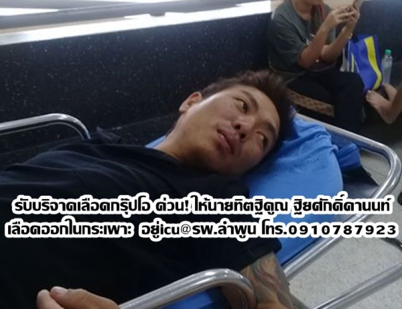 "ขอช่วยประกาศ ขอคนบริจาคเลือดกรุ๊บโอ ให้นายทิตฐิคูณ ฐิยศักดิ์ดานนท์ หอผู้ป่วยหนัก3 ไอซียู ๓ ตึก60ปี ร.พ.ลำพูนเจ้า