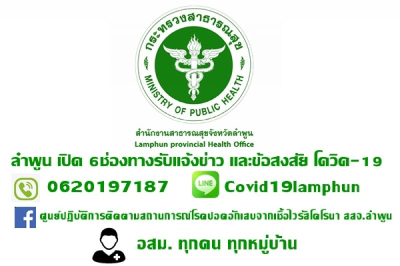 | • ลำพูน เปิด 6ช่องทางรับแจ้งข่าว และข้อสงสัย โควิด-19 โทร./Line 0620197187 |