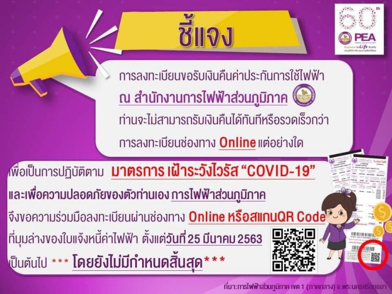 ด้วยความตระหนักถึงสถานการณ์ การแพร่ระบาดในช่วงนี้ จึงอยากเรียนผู้ใช้ไฟฟ้าทุกท่าน
