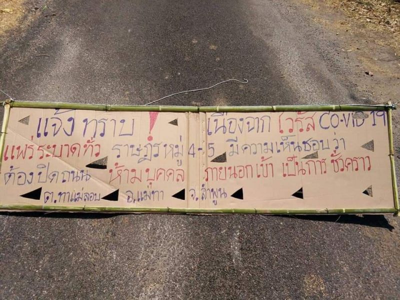 ทาแม่ลอบ ม.4,5 ปิดหมู่บ้านห้ามคนนอกเข้า ป้องกันโควิด19
