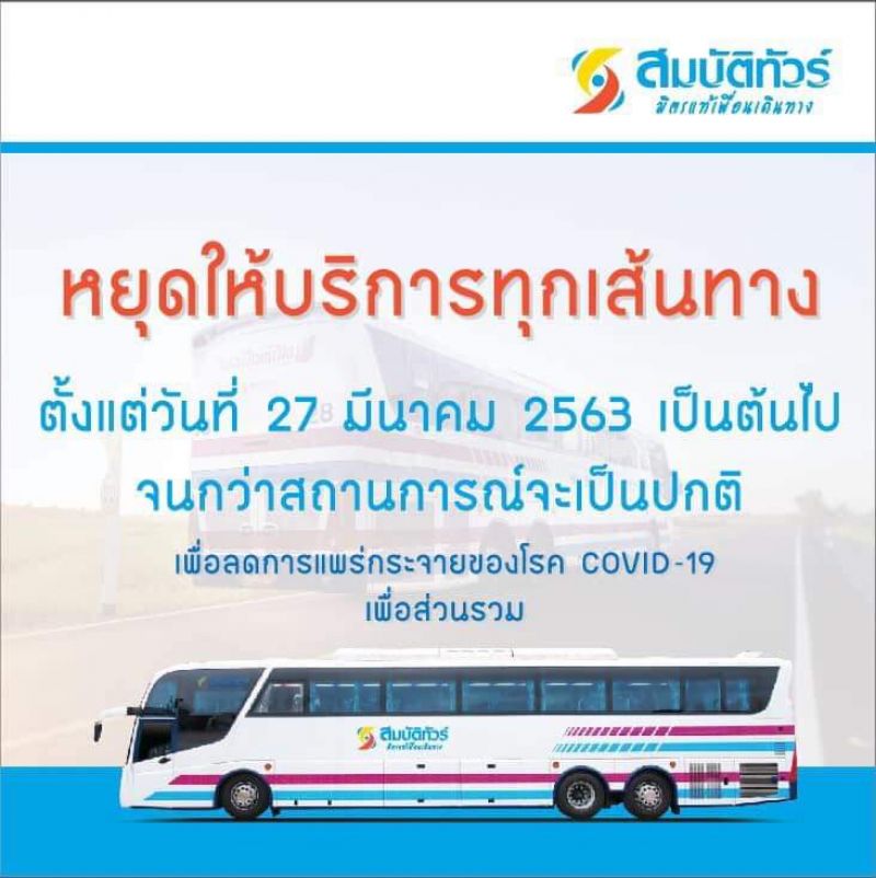 | • สมบัติทัวร์หยุดให้บริการทุกเส้นทาง เริ่ม 27 มีนาคม 63 |