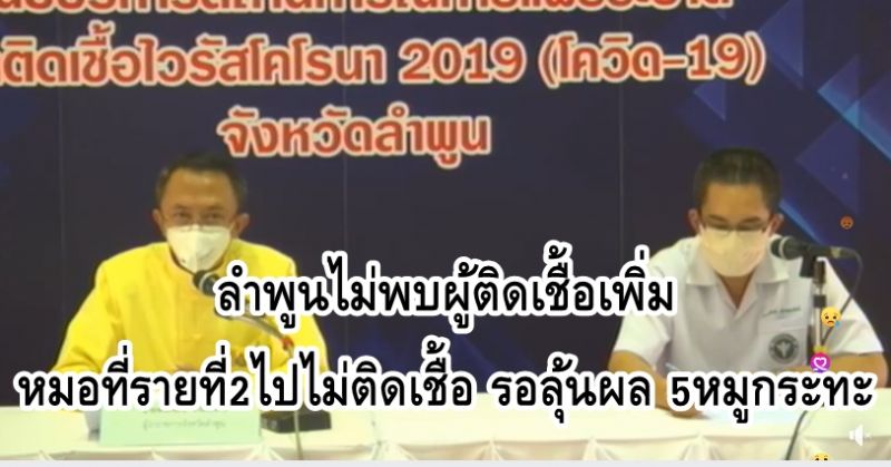 ลำพูนไม่พบผู้ติดเชื้อเพิ่ม ,หมอที่รายที่2ไปตรวจ ไม่ติดเชื้อ ,รอลุ้นผล 5หมูกระทะ