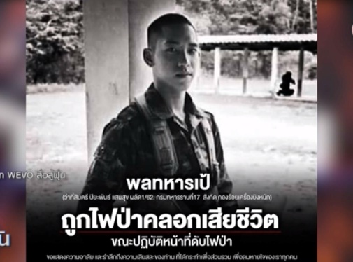 แม่ฮ่องสอน-เกิดเหตุไฟป่าใกล้กับฐาน และกำลังลุกลามอย่างหนัก มีการเรียกกำลังพลไปช่วยดับ โดยระหว่างปฏิบัติภารกิจ พลทหารปิยพันธ์ ประสบอุบัติเหตุ สะดุดหลุม ผลัดตกลงในร่องห้วย ตัวได้เกี่ยวติดกับลวดหนาม เชื้อเพลิงที่มีเป็นจำนวนมากในจุดดังกล่าว ส่งผลให้ไฟป่าลุกลาม เข้าคลอกพลทหารปิยพันธ์อย่างรวดเร็ว แม้เพื่อน และเจ้าหน้าที่จะเร่งดับไฟป่าและเข้าช่วยเหลือ แต่พลทหารปิยพันธ์ ก็เสียชีวิตในเวลาต่อมา