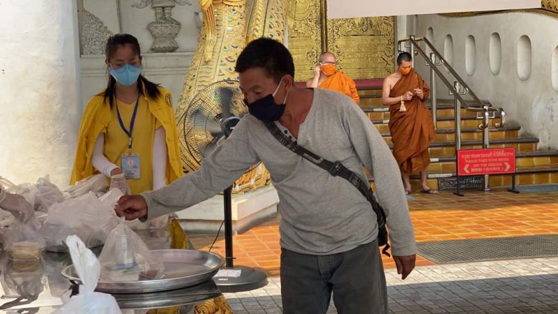 วัดเจดีย์หลวงวรวิหาร ตั้งโรงทาน แจกข้าวกล่องให้กับประชาชนที่ได้รับผลกระทบจากโควิด-19 วันละ 800 กล่อง
