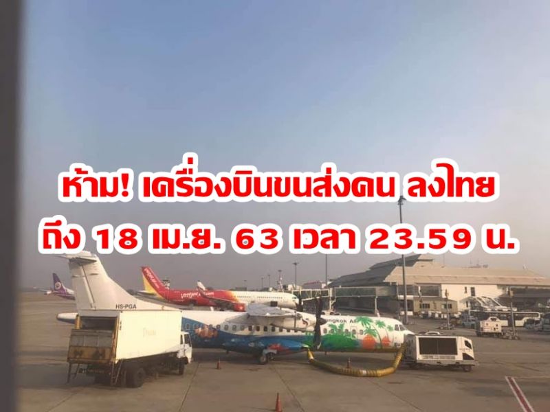 | • ห้าม! เครื่องบินขนส่งคน ลงไทย ถึง 18 เม.ย. 63 เวลา 23.59 น. |
