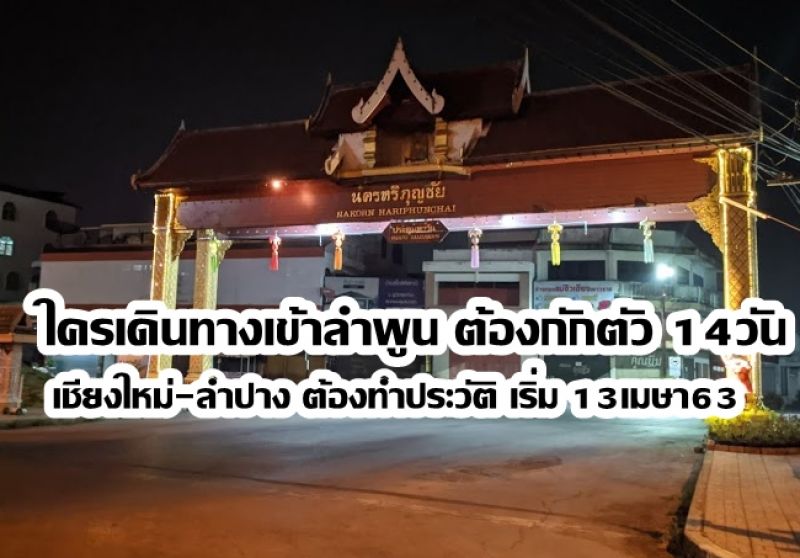 | • ใครเดินทางเข้ามาลำพูน ต้องกักตัว 14วัน และทำประวัติ เริ่ม 13เมษา63 |